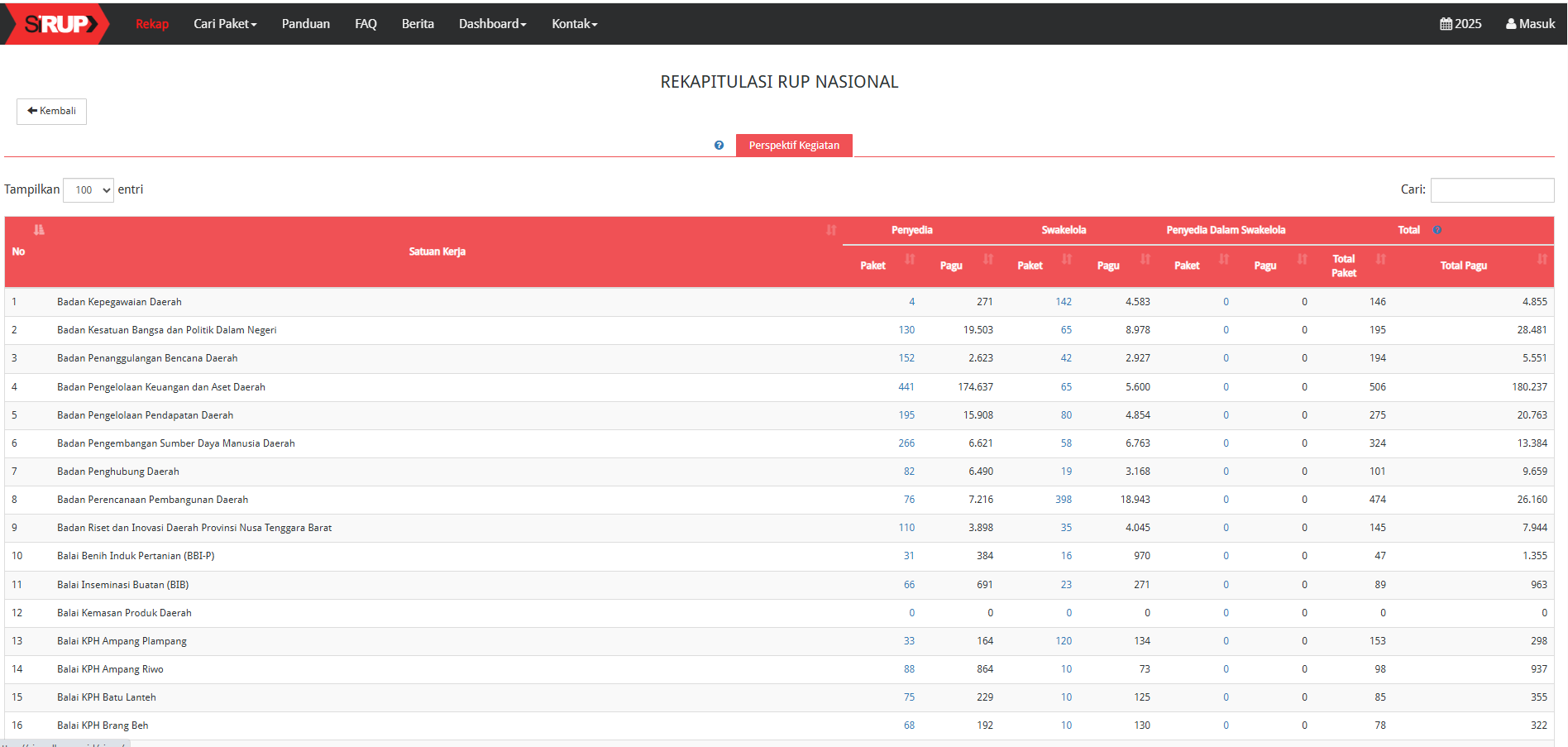 Tangkapan Layar RUP Provinsi NTB Tahun 2025