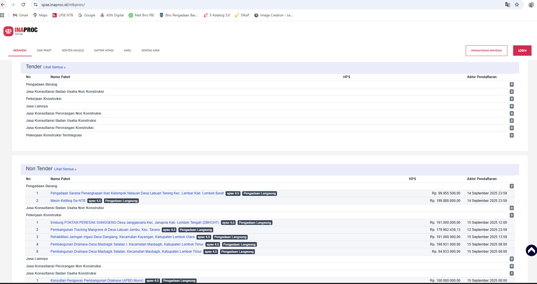Tangkapan layar halaman LPSE NTB